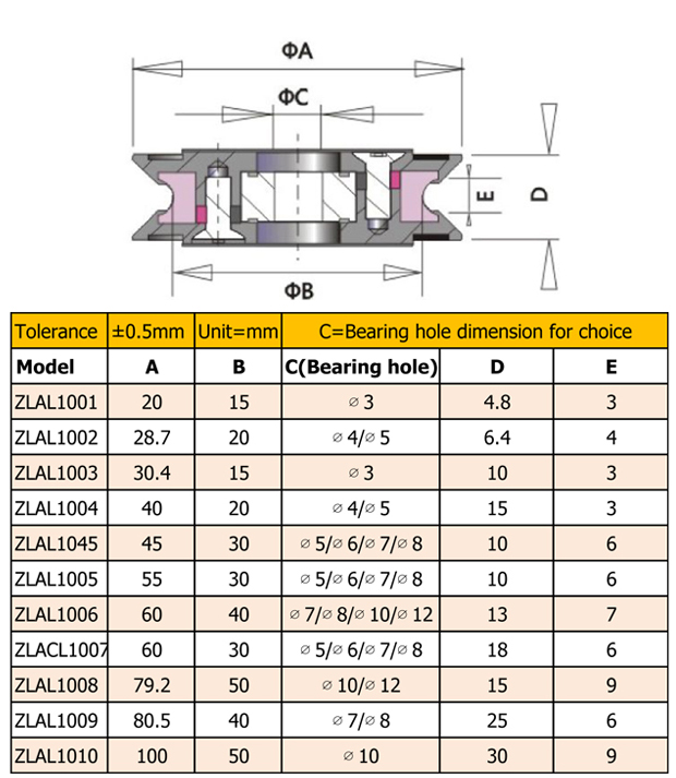 ZLAL006-B08 Aluminum flanged ceramic pulley